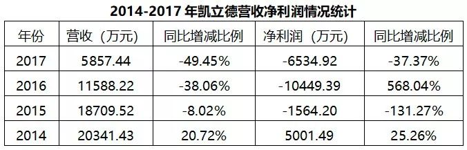 从凯立德最近几年的年报来看,其盈利情况不容乐观。